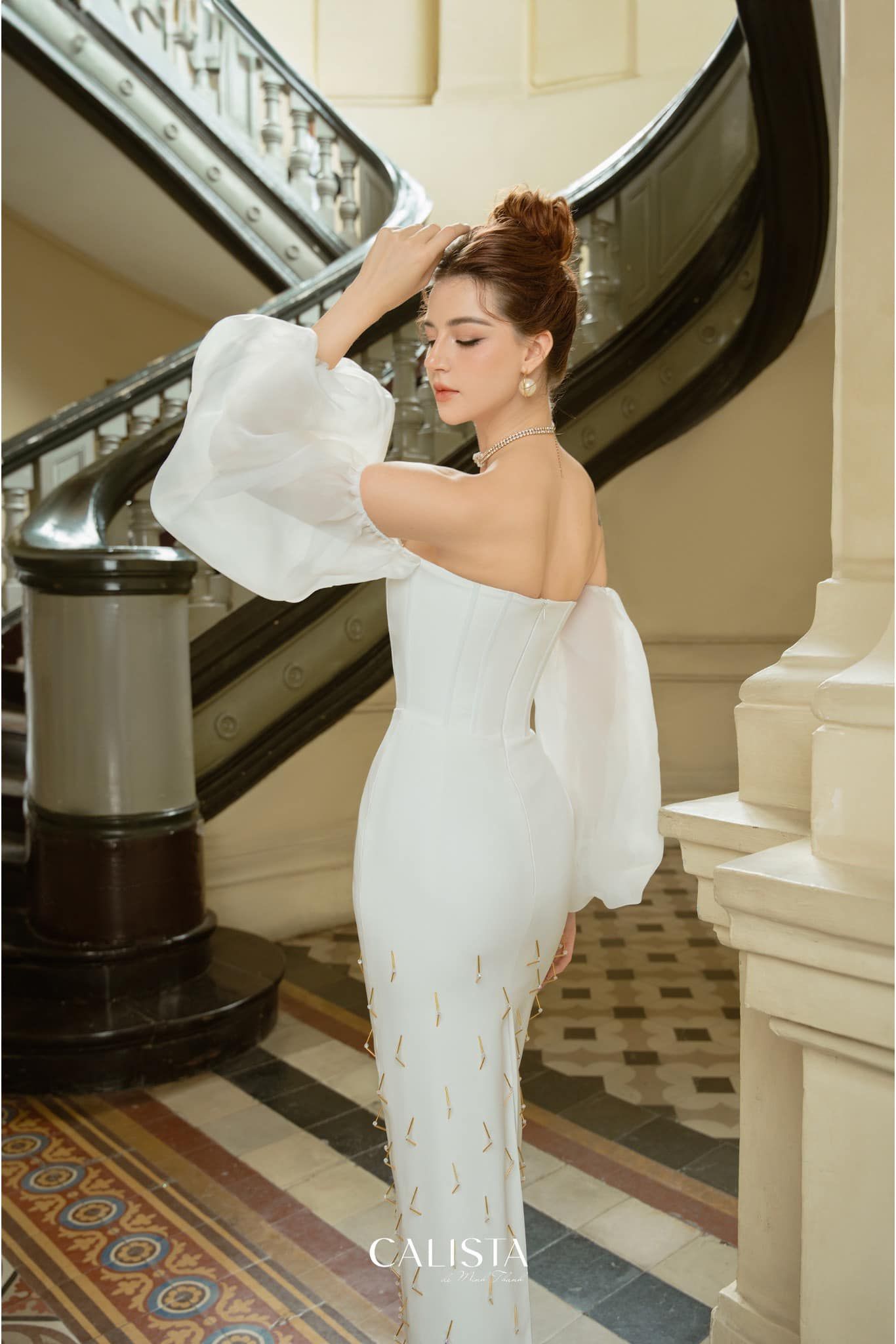 A perfect combination of premium silk and soft organza with feminine puff sleeve details, every detail is meticulously calibrated to create a noble, luxurious masterpiece that cannot be denied.