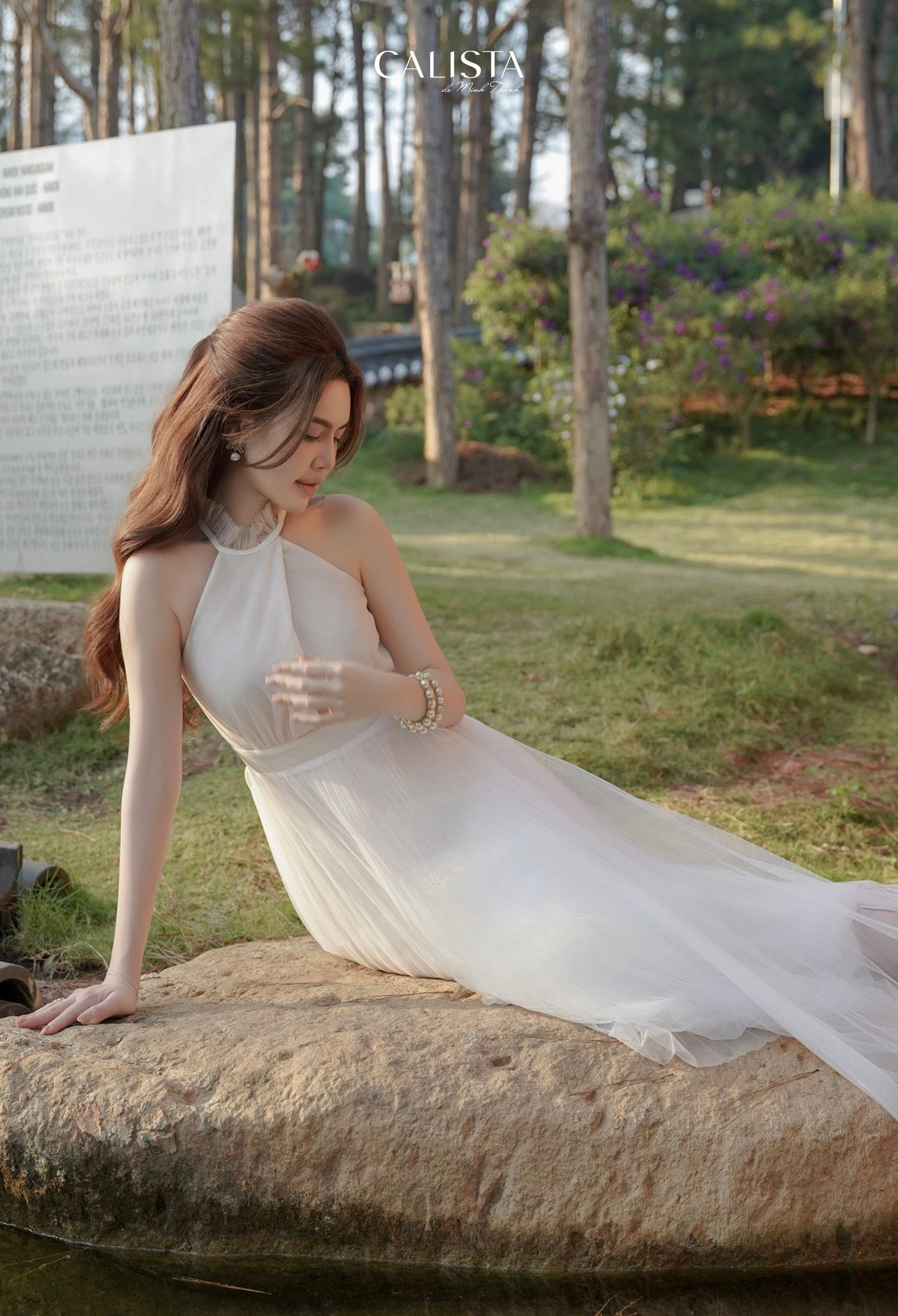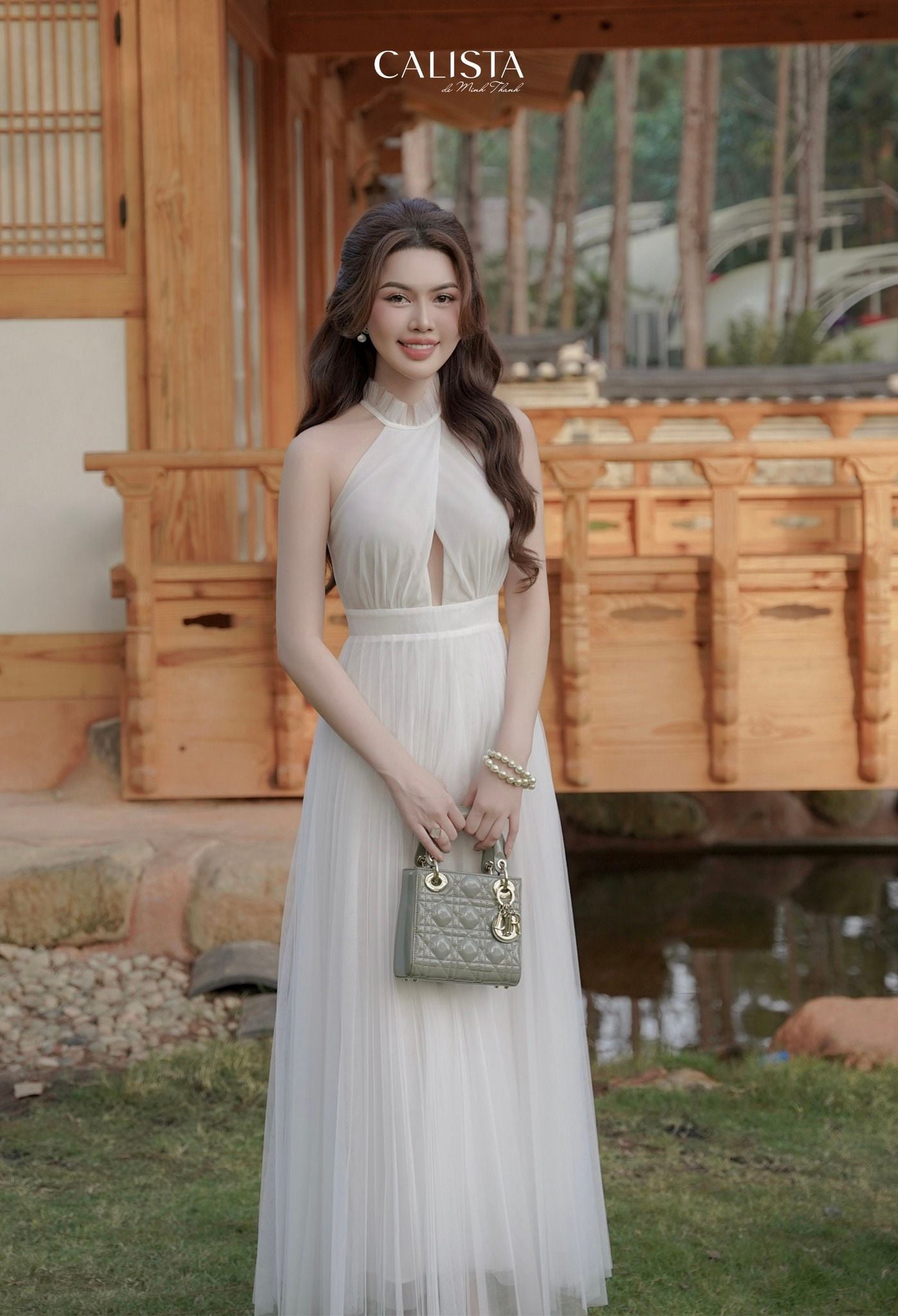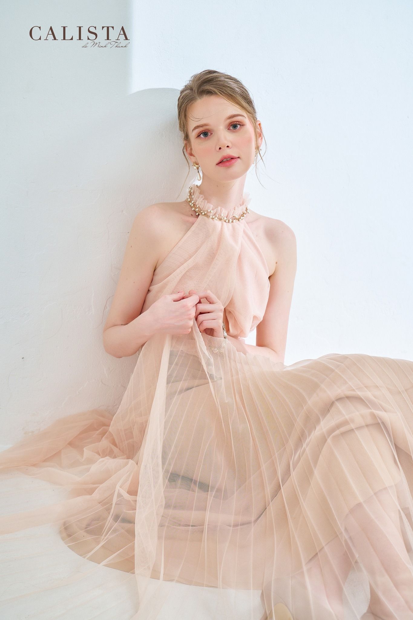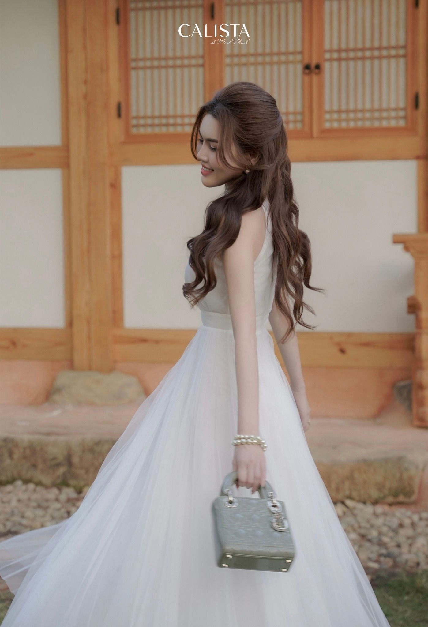 With meticulously adjusted diagonal details, it brings a mysterious depth effect to the tulle fabric, honoring the gentleness of the muse 𝐂𝐚𝐥𝐢𝐬𝐭𝐚.