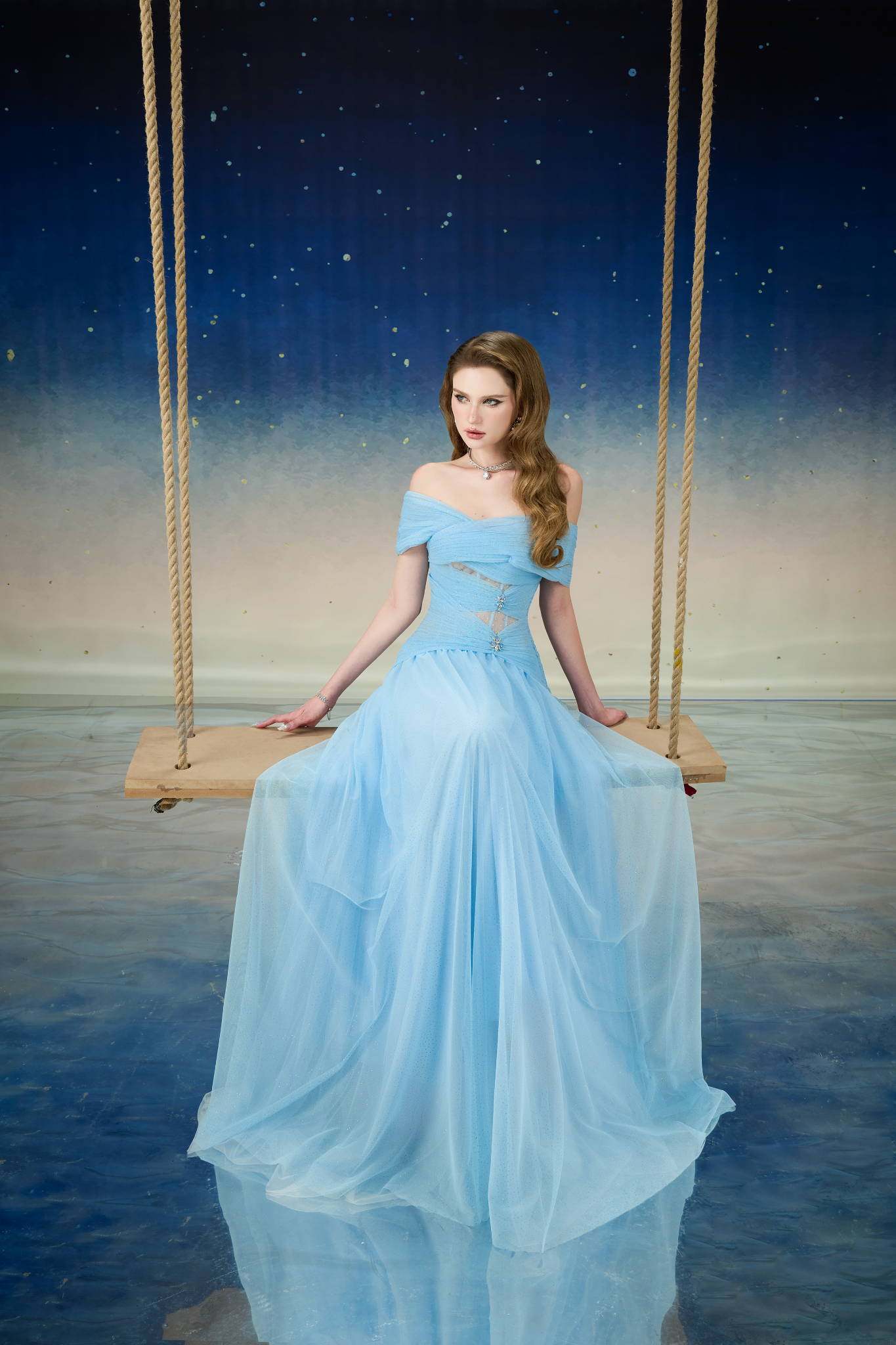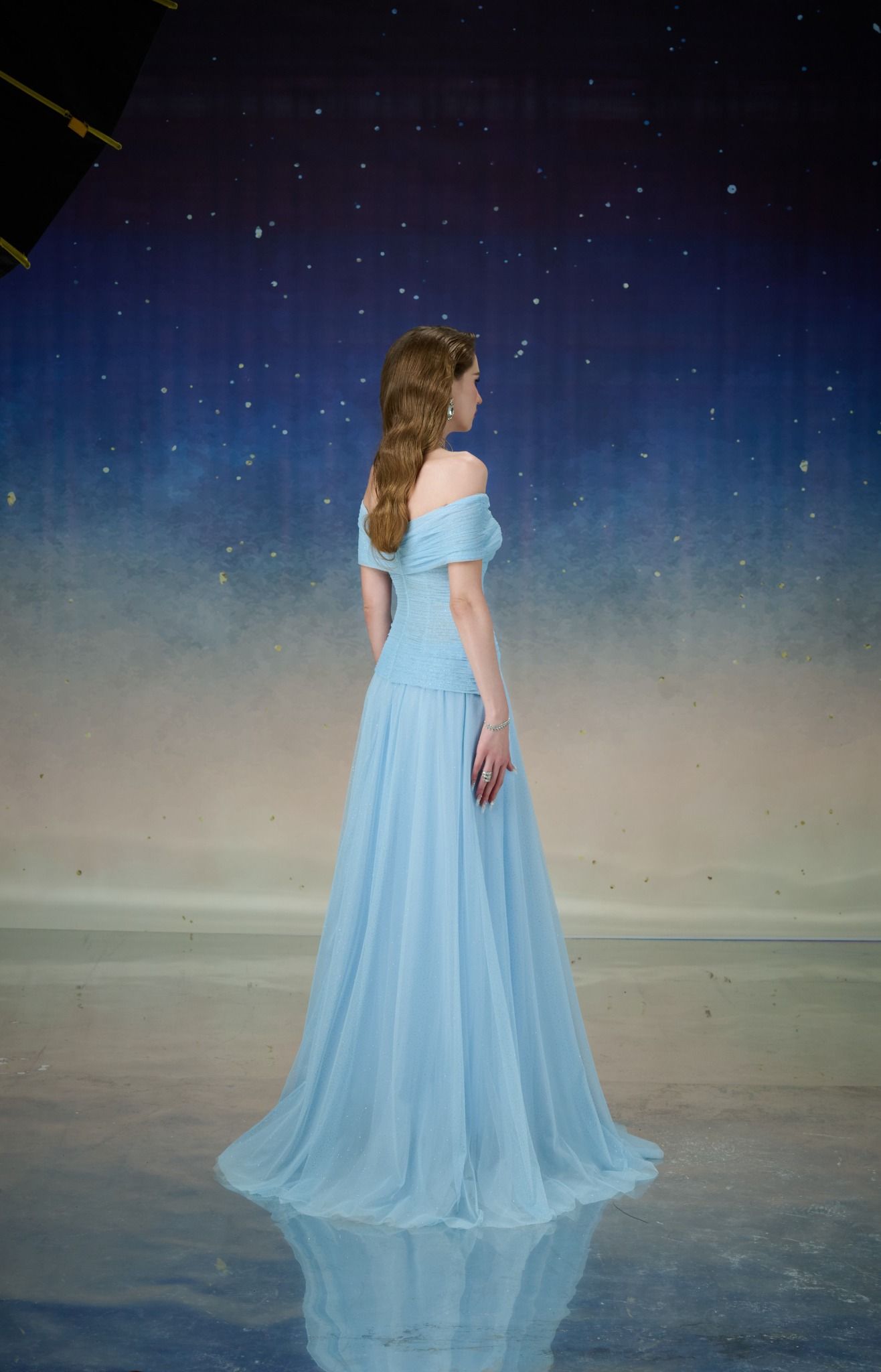 Sử dụng kỹ thuật draping để đạt được tỉ lệ cho người mặt. Che đi nhúng khuyết điểm. Details đính kết như nhung vì sao trên bầu trời