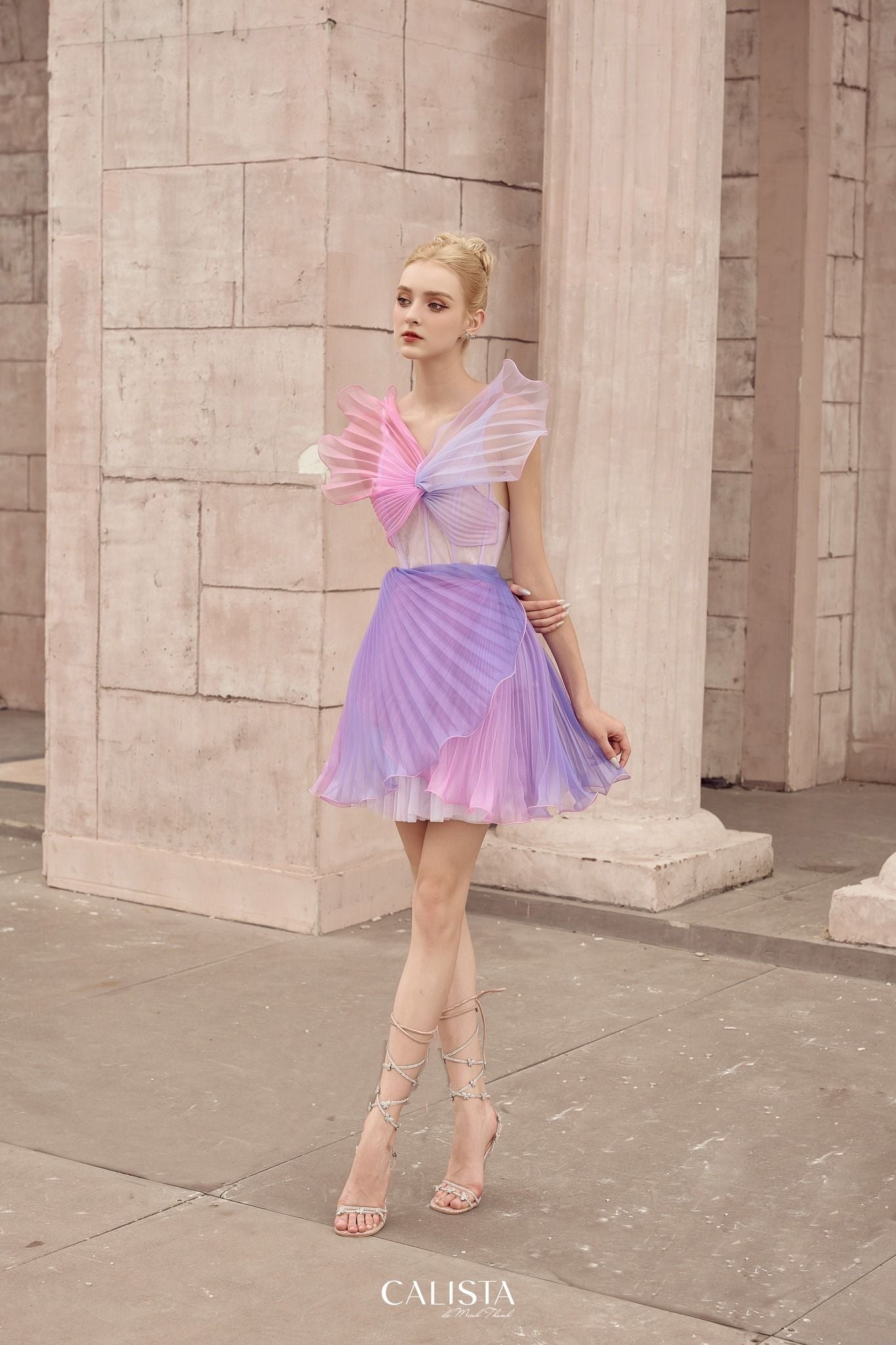 Next, the bottom part of the skirt flares slightly with the technique of crisscrossing and fanning almost the entire skirt with just enough length to reveal long slender legs.