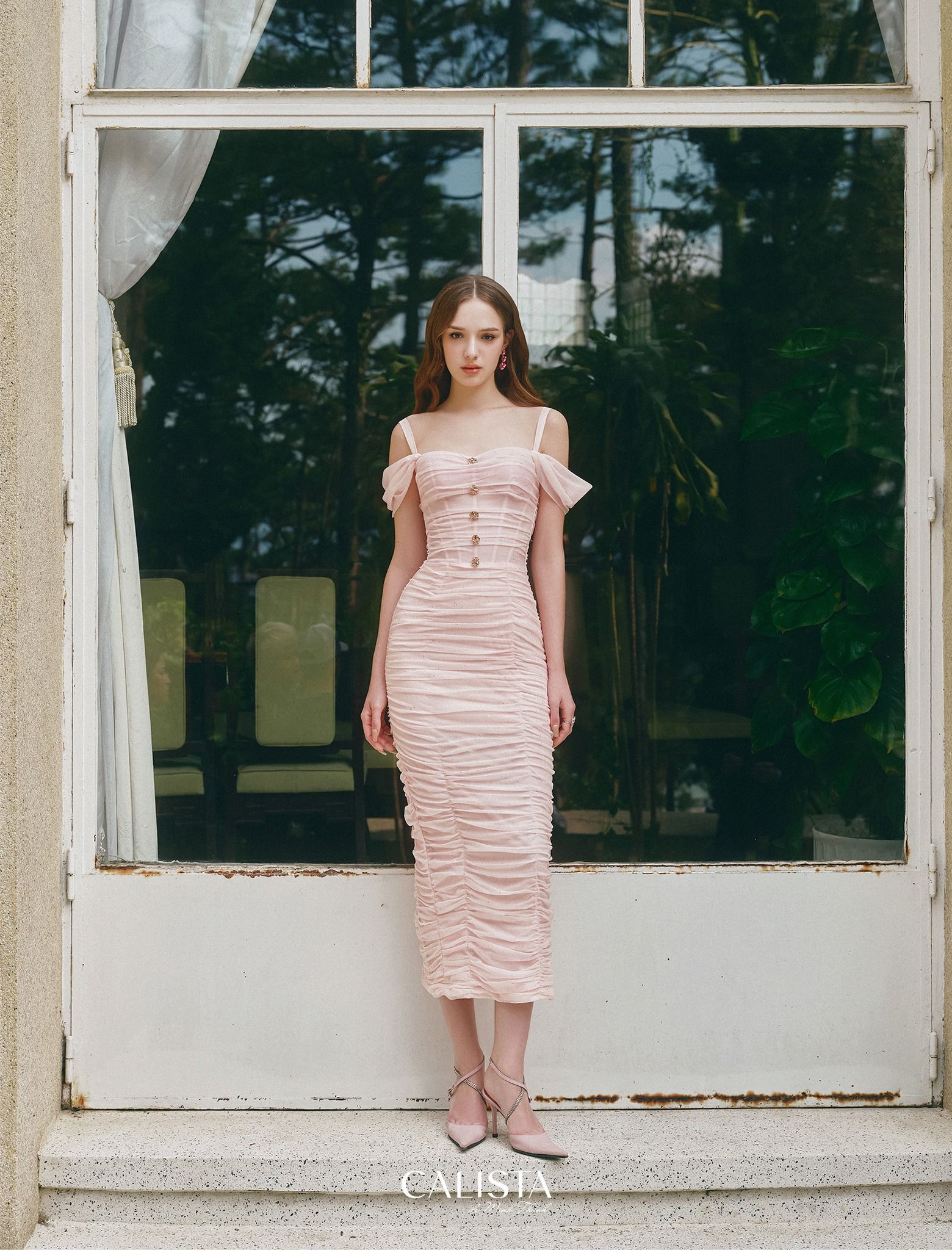 "Thổi hồn" vào thiết kế là một sự ngọt ngào khó đoán trộn lẫn thêm một chút sự lãng mạn đầy mê hoặc, 𝐄𝐯𝐞𝐥𝐲𝐧 𝐃𝐫𝐞𝐬𝐬 như một note hương tươi mới đầu ngày đánh thức được vẻ đẹp trong trẻo đầy hút hồn của người phụ nữ. Minh chứng cho vẻ đẹp hoa mỹ ấy, nghệ nhân 𝐂𝐚𝐥𝐢𝐬𝐭𝐚 gửi gắm từng ý niệm vào từng chi tiết , tận dụng thế mạnh xếp nhún thủ công xuyên suốt tác phẩm hoà cùng chất vải Misa co giãn ánh kim phản chiếu mọi ánh sáng, mọi ánh nhìn đều đổ dồn về nàng. Đan cài vào 𝐄𝐯𝐞𝐥𝐲𝐧 𝐃𝐫𝐞𝐬𝐬 mang lại vẻ đẹp kiêu sa, hút hồn, từng đường nét tinh tế được khắc họa trên phom dáng corset tôn vinh những đường nét tự nhiên. mang lại thiện cảm từ cái nhìn đầu.