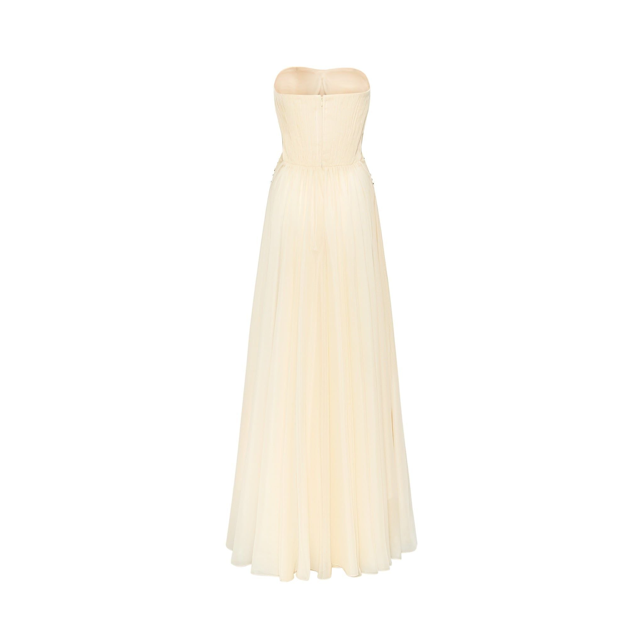 Style: Long party dress, flowing A-line skirt, sweetheart neckline