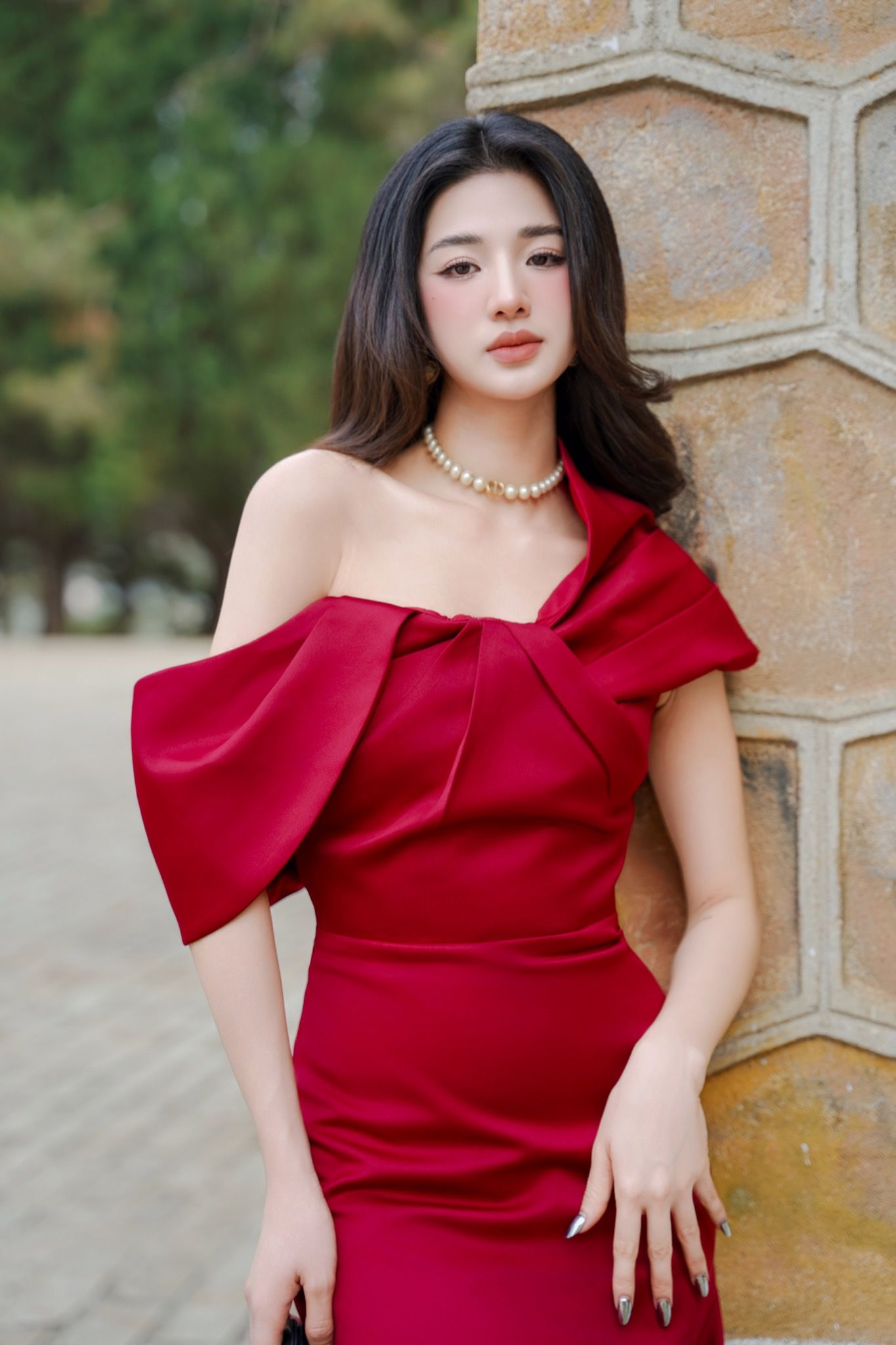 The Grace Dress design is like soft and flexible flower petals stacked on top of each other to show off the girl's slender and elegant shoulders fully. Highlighted by aesthetically contrasting elements with neutral colors combined with sophisticated handcrafted details, Grace Dress has a multi-dimensional beauty that evokes a picture of the contemporary lifestyle of Calista's muses in the background of high-class taffeta material.