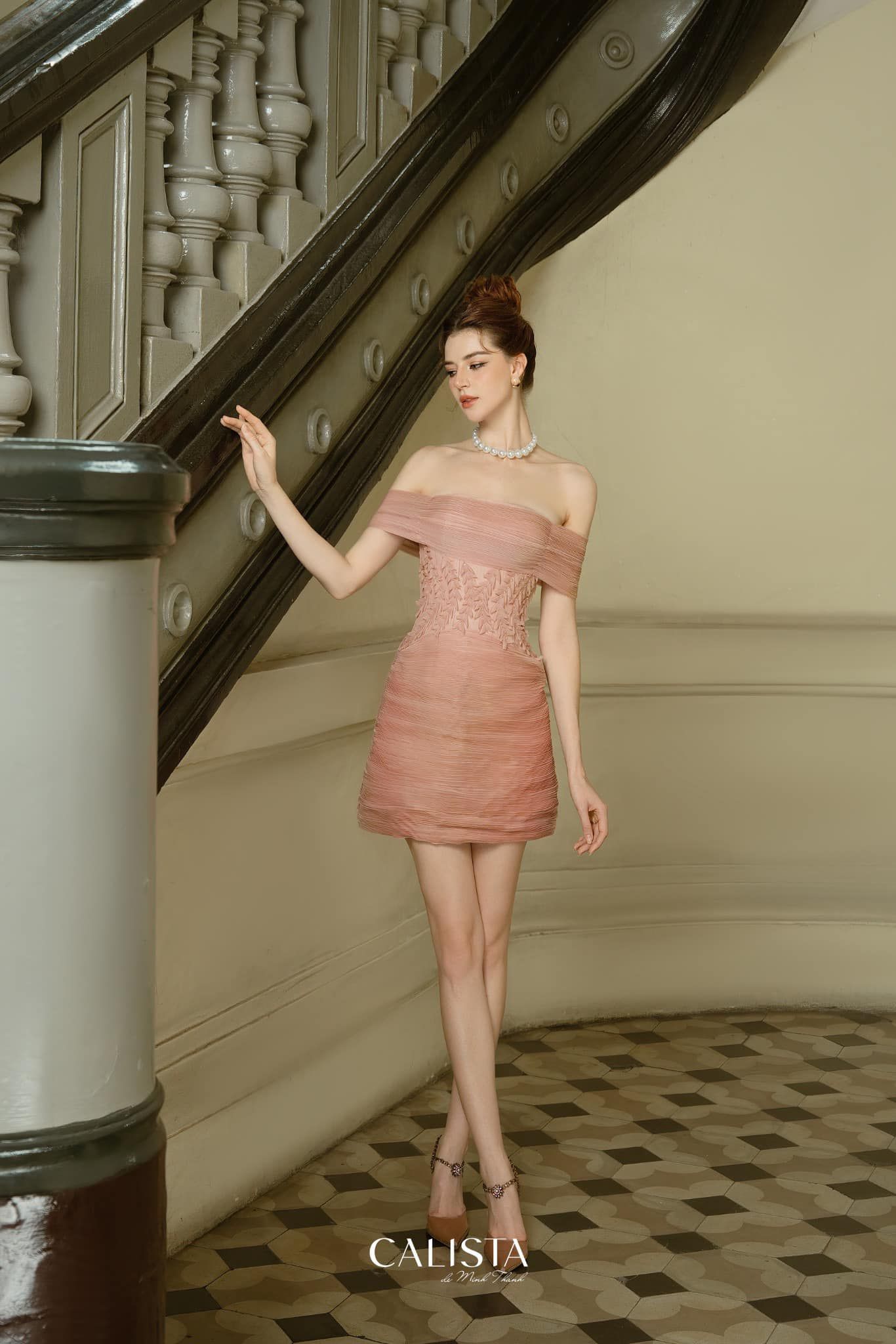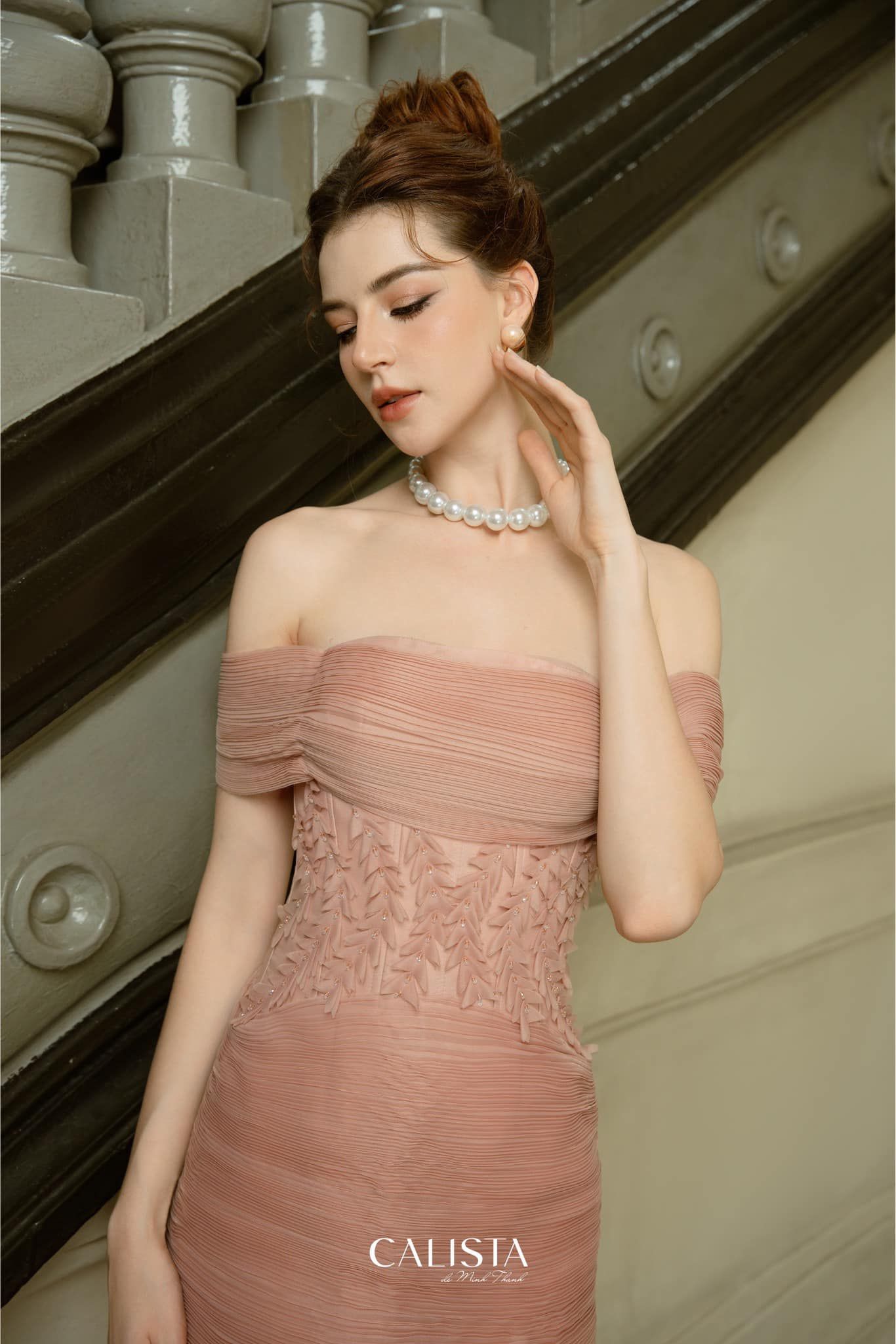 The corset dress is dotted with fabric pieces that use laser cutting techniques and meticulously attached crystals along the waist curve, creating an eye-catching effect. The off-the-shoulder detail and sophisticated form-building technique make 𝐊𝐚𝐲𝐥𝐢𝐧 𝐃𝐫𝐞𝐬𝐬 shine even more with its elegant beauty.
