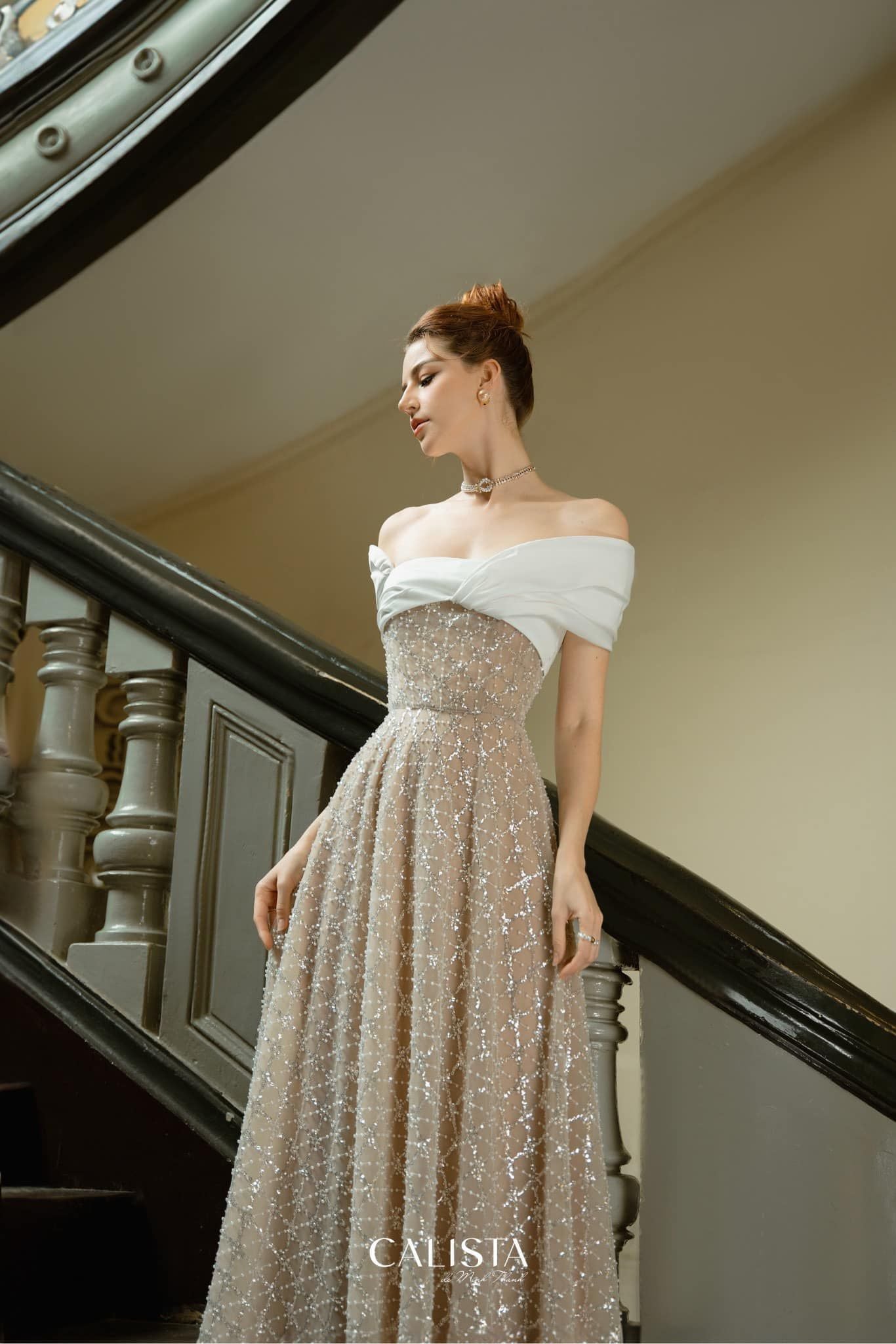 Taking advantage of 𝐂𝐚𝐥𝐢𝐬𝐭𝐚's signature criss-cross technique, the off-the-shoulder highlight cleverly shows off her beautiful beauty, making the muse look gentle, and airy but no less seductive, attracting the eye every time she appears.