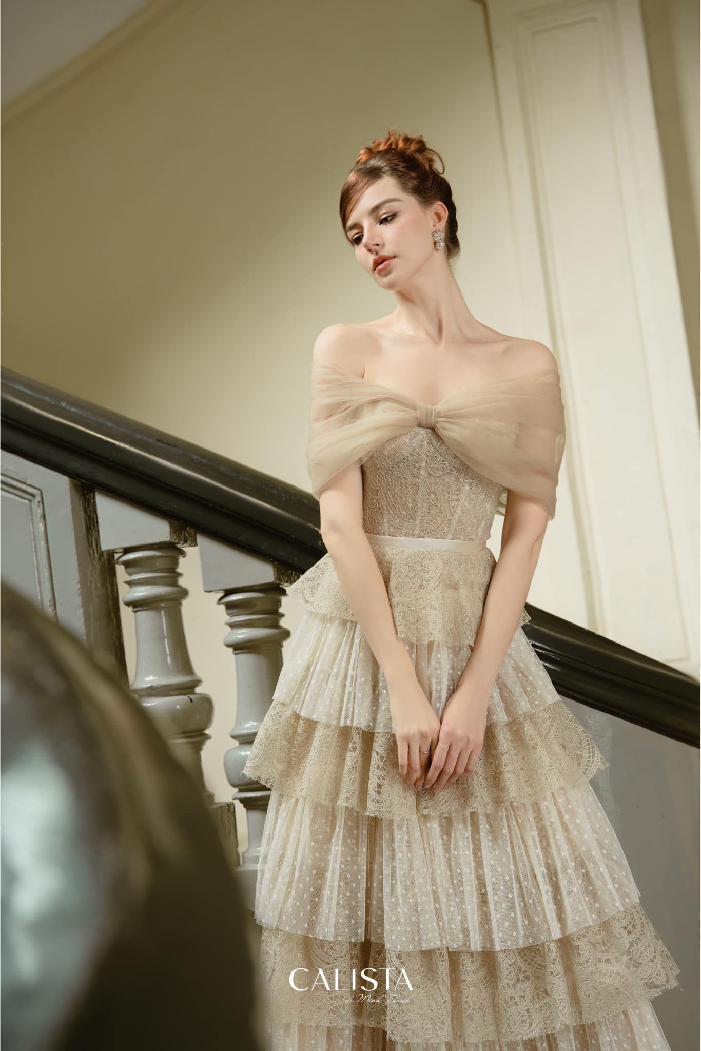 The regal lace mixed with dot tulle material further confirms that 𝐒𝐨𝐥𝐚𝐫𝐚 𝐃𝐫𝐞𝐬𝐬 is a piece of art.