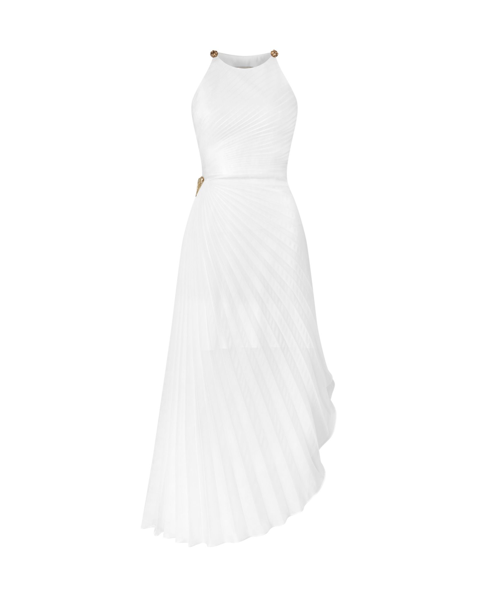 The graceful waistline is accentuated by a luxurious gold-plated hollow heart-shaped pin.