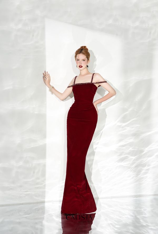 With high-quality smooth velvet silk fabric selected by Calista, it creates the luxury of this festive dress. The straps are meticulously attached with many different crystal materials as if painting a perfect picture.