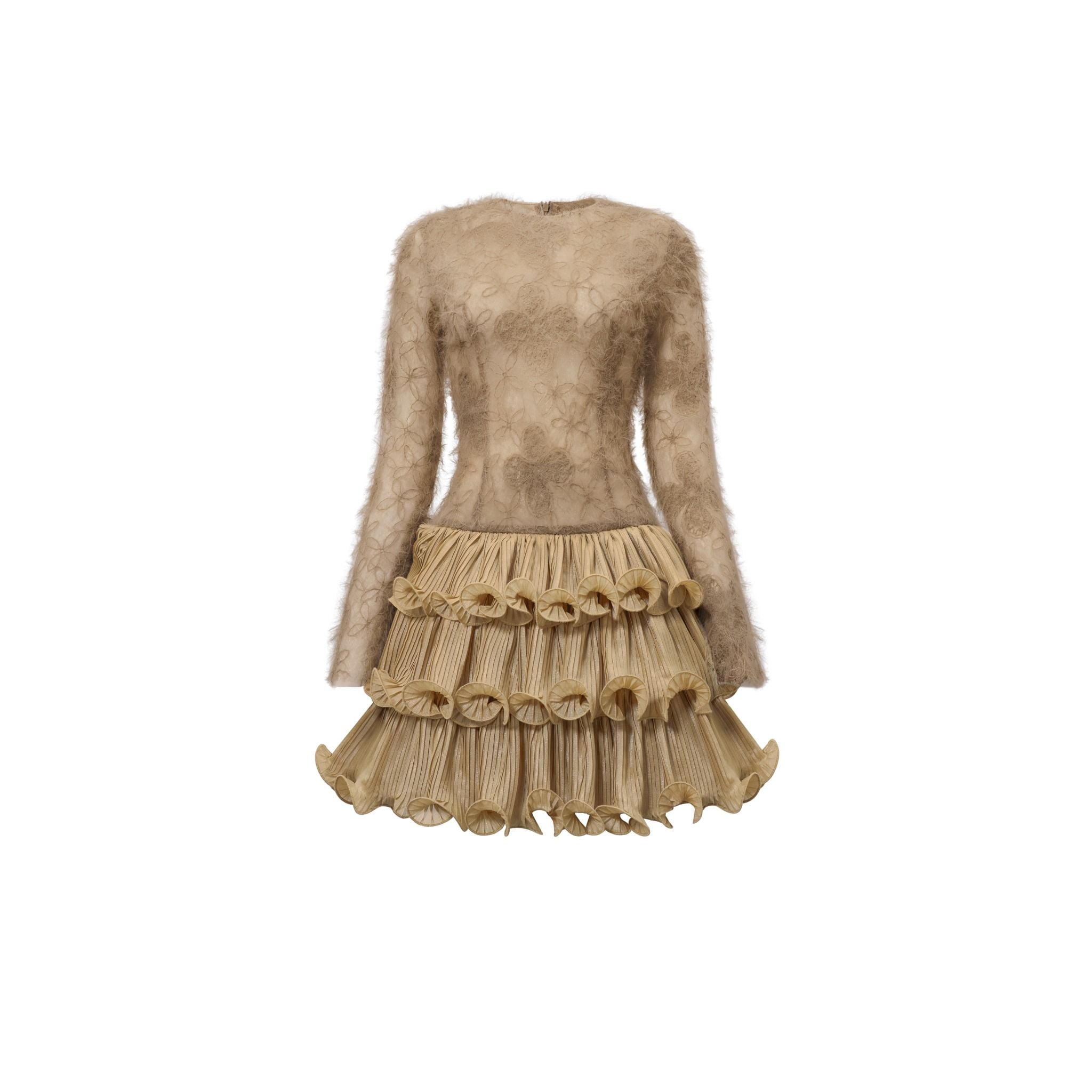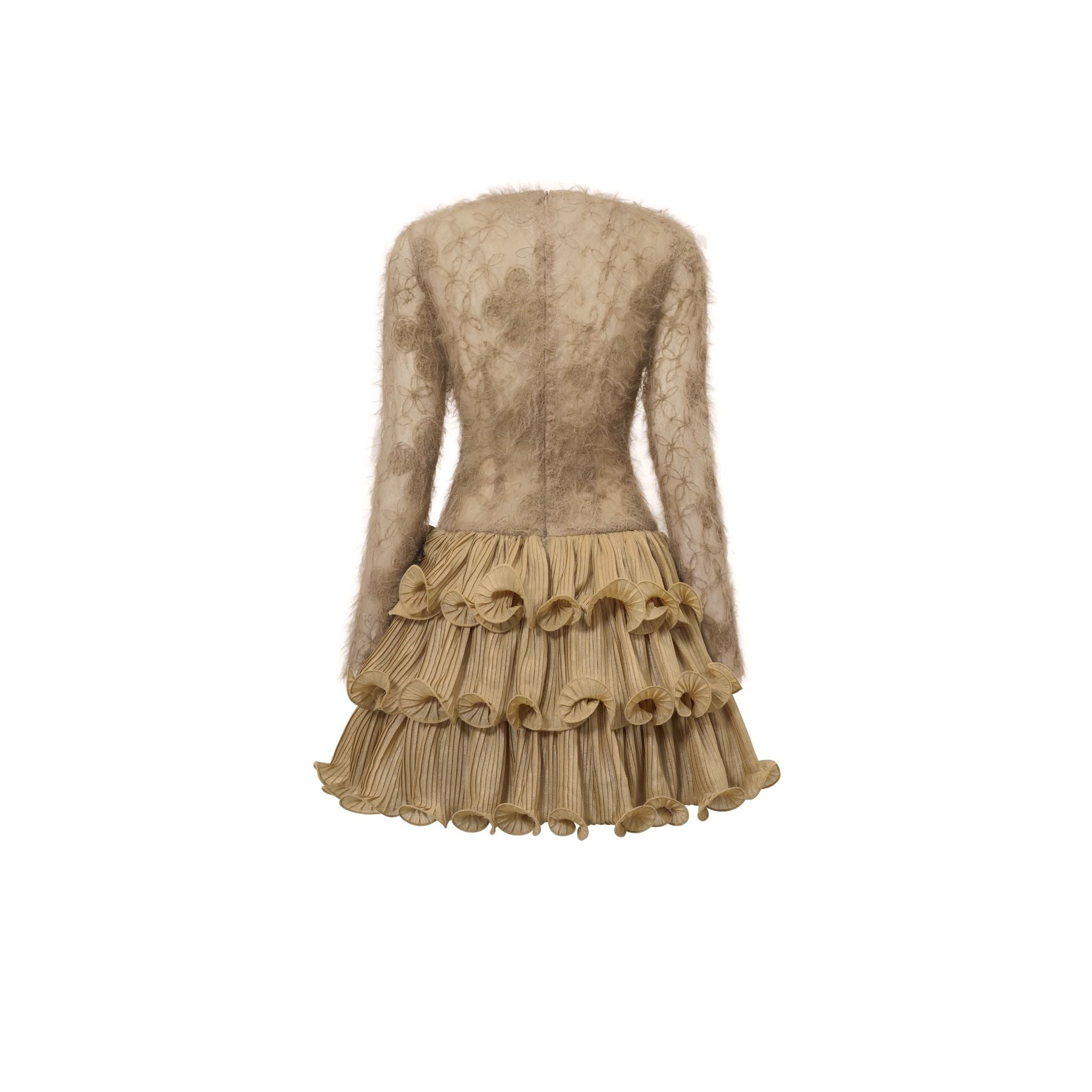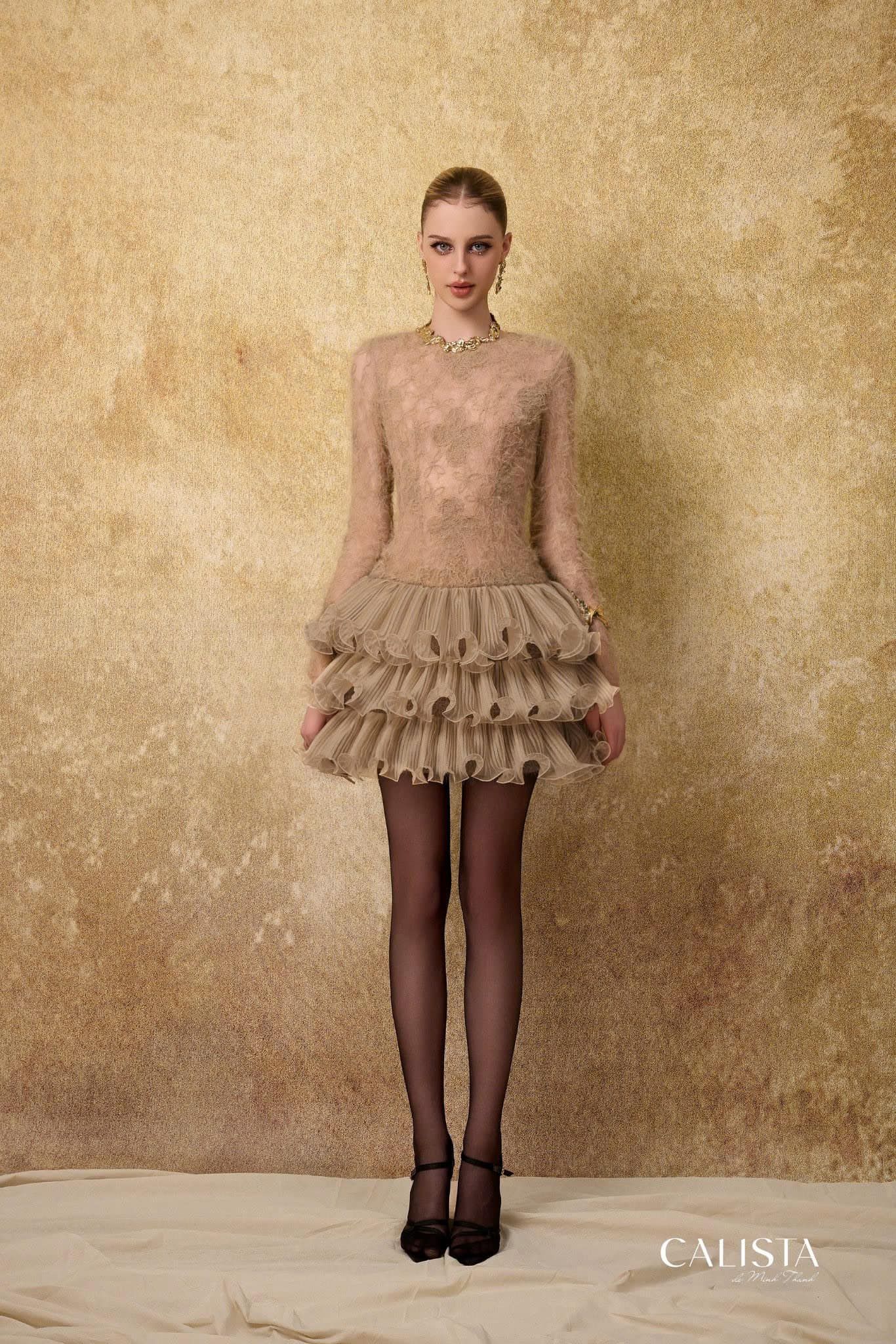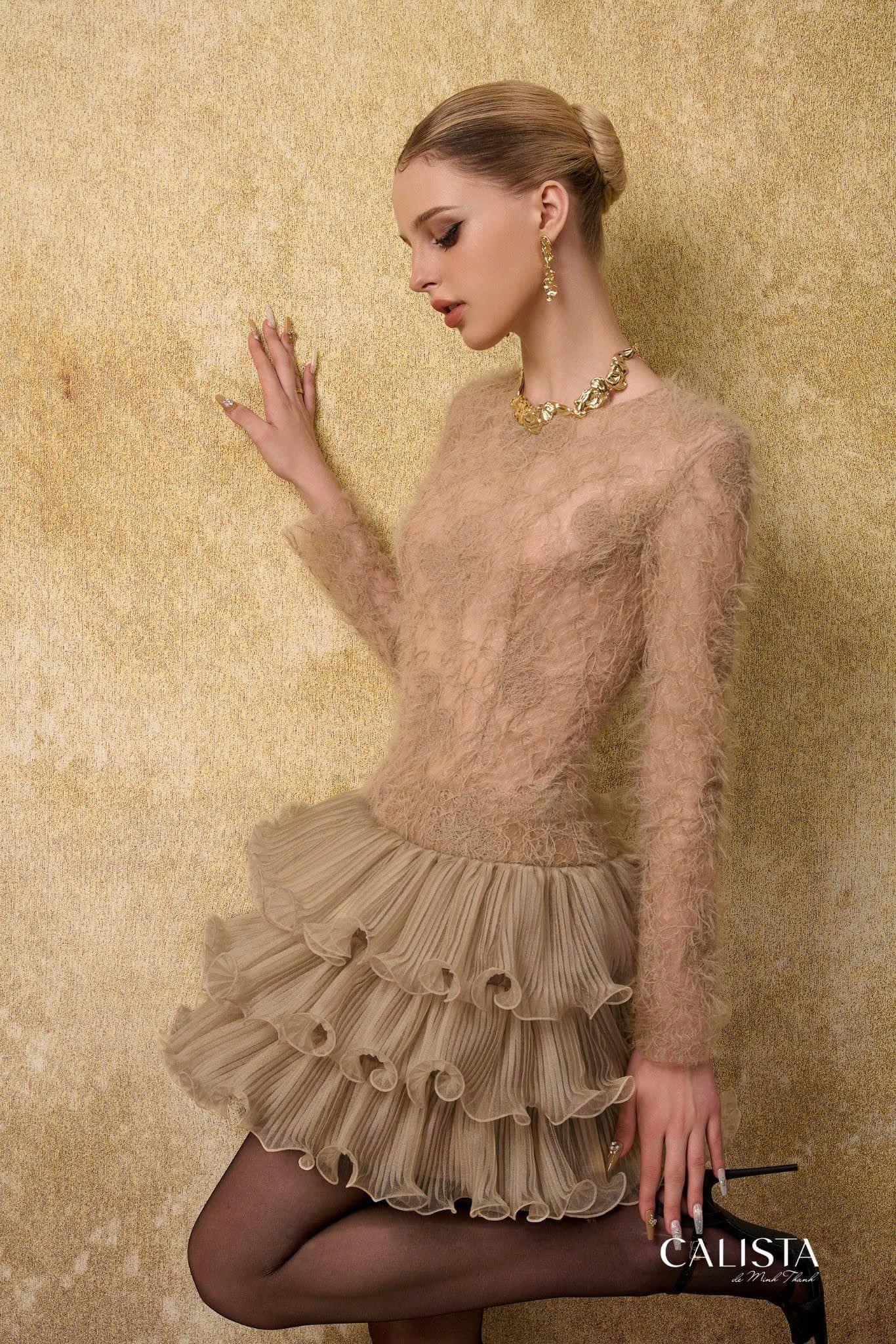 Chất liệu cao cấp kết hợp kỹ thuật xử lý cầu kỳ của chân váy. Tạo nên một tổng thể thật trendy
